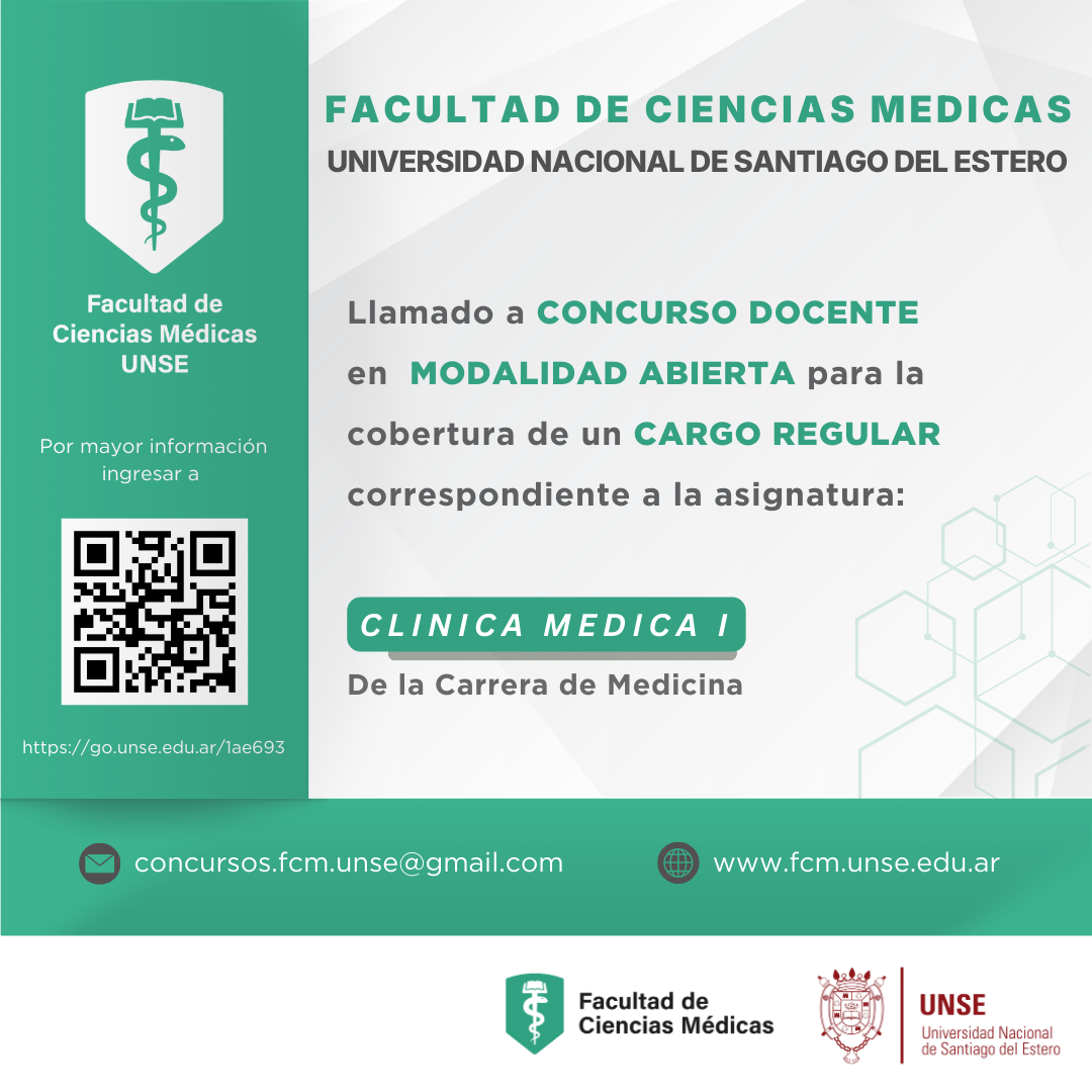 La Facultad de Ciencias Médicas (FCM) de la Universidad Nacional de Santiago del Estero (UNSE), convoca a inscripción de postulantes al Concurso Público de Títulos, Antecedentes, Entrevista y Oposición -aprobado por Resolución...