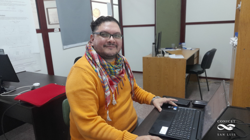 Desde su oficina en la UNSE, frente a modelos virtuales que predicen el futuro de la ciencia de materiales, el Dr. Pinto demuestra que la investigación de punta también se hace en Santiago del Estero.